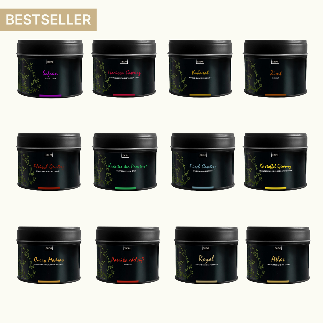 Mit dem 1001 Nacht Set erlebst du die ganze Gewürzvielfalt des Orients in einer Box. Dieses Set vereint 12 ausgewählte Mischungen – jede mit einer eigenen Geschichte, jedem Gericht seinen besonderen Zauber schenkend.